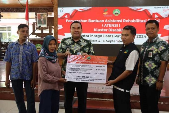 BLORA (Ampuh.id) – Sebanyak 157 penyandang disabilitas di Blora menerima bantuan Asistensi Rehabilitasi Sosial (Atensi) dari Kementerian Sosial Republik Indonesia (Kemensos RI) melalui mitra Sentra Margo Laras Pati. Bantuan tersebut berupa alat bantu disabilitas sebanyak 35 penerima manfaat, bantuan kewirausahaan 43 penerima dan bantuan paket sembako untuk 79 penerima manfaat, diserahkan di pendopo rumah dinas Bupati Blora, Kamis (5/9/2024).