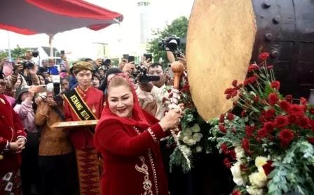 Mbak Ita yang dalam kesempatan itu berlaku sebagai Adipati Kota Semarang Kanjeng Mas Ayu Tumenggung Purbaningrum juga menandai peresmian Dugderan dengan memukul bedug bersama jajaran Forkopimda.
