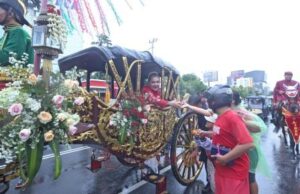 “Ada arak-arakan pasukan berkudo atau pasukan prajurit 40-an. Ditambah ada pembagian kue keranjang dari Paguyuban Tionghoa, selain kue ganjel rel yang ada di Masjid Agung Semarang dan dibagikan di Aloon-Aloon, karena masih jaraknya berdekatan dengan Imlek,” sebutnya.