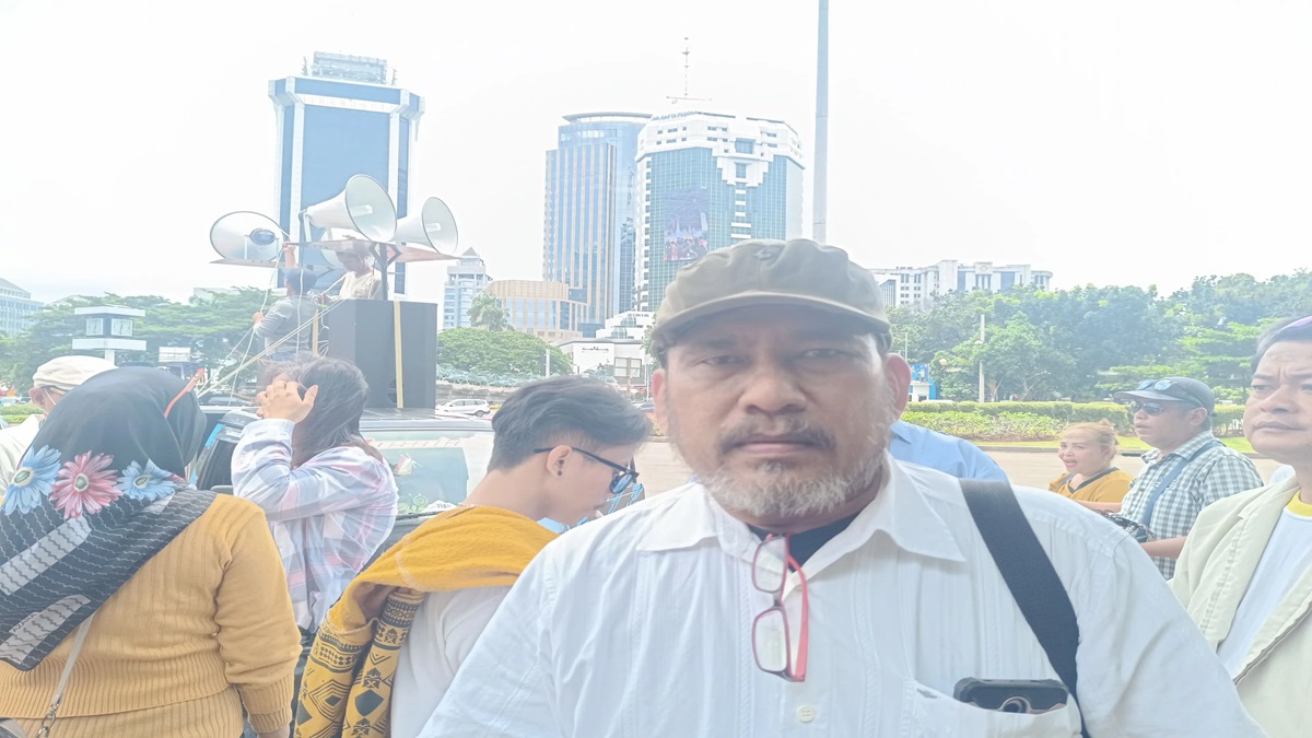 “Kami datang saat ini kesusahan usai pemilu akibat politisasi bansos, politisasi sembako yang dibagikan untuk merayu masyarakat pada paslon tertentu itu,” ujar Koordinator GRK Ronald Mulia Sitorus di sela-sela aksi,