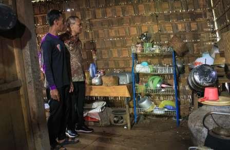 Saat memasuki rumah, Gubernur sempat menginjak lantai tanah yang masih lembap. Pandangan Luthfi terus beredar memperhatikan kondisi rumah tersebut. Sesekali memandang bagian atap yang mulai rapuh.