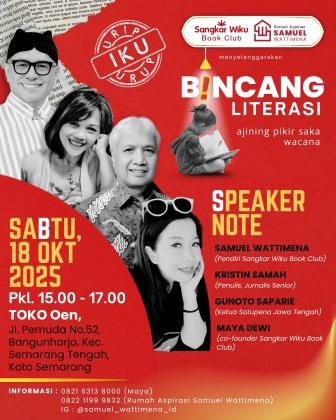 SEMARANG (Ampuh.id) – Komunitas literasi Sangkar Wiku Book Club akan menyelenggarakan kegiatan Bincang Literasi 2025 di Toko Oen, Jalan Pemuda No. 52, Semarang, Sabtu mendatang (18/10/2025) pukul 15.00–17.00 WIB. Acara ini mengangkat topik “Kesusastraan dan Kesehatan Mental”, sebuah tema yang dinilai relevan dengan kondisi masyarakat saat ini.
