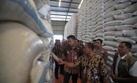 Kegiatan inspeksi dilanjutkan ke Gudang Badan Urusan Logistik (Bulog) di Desa Meger, Ceper. Dalam kesempatan tersebut, bupati memastikan ketersedian bahan pangan bagi masyarakat aman. Berdasarkan data dari Bulog, saat ini dari jumlah stok beras yang tersimpan mencapai 11.450 ton.